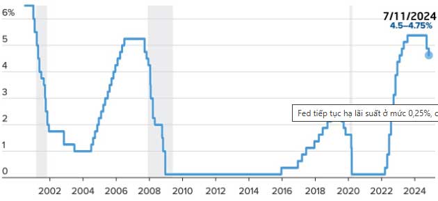 Sau mức cắt giảm 0,5% ở tháng 9, Uỷ ban Thị trường Mở Liên bang (FOMC) đã hạ lãi suất thêm 0,25%, xuống phạm vi 4,50% – 4,75%. Mức lãi suất này thiết lập mức phí mà các ngân hàng tính cho nhau khi cho vay qua đêm, nhưng thường ảnh hưởng đến các công cụ nợ tiêu dùng.